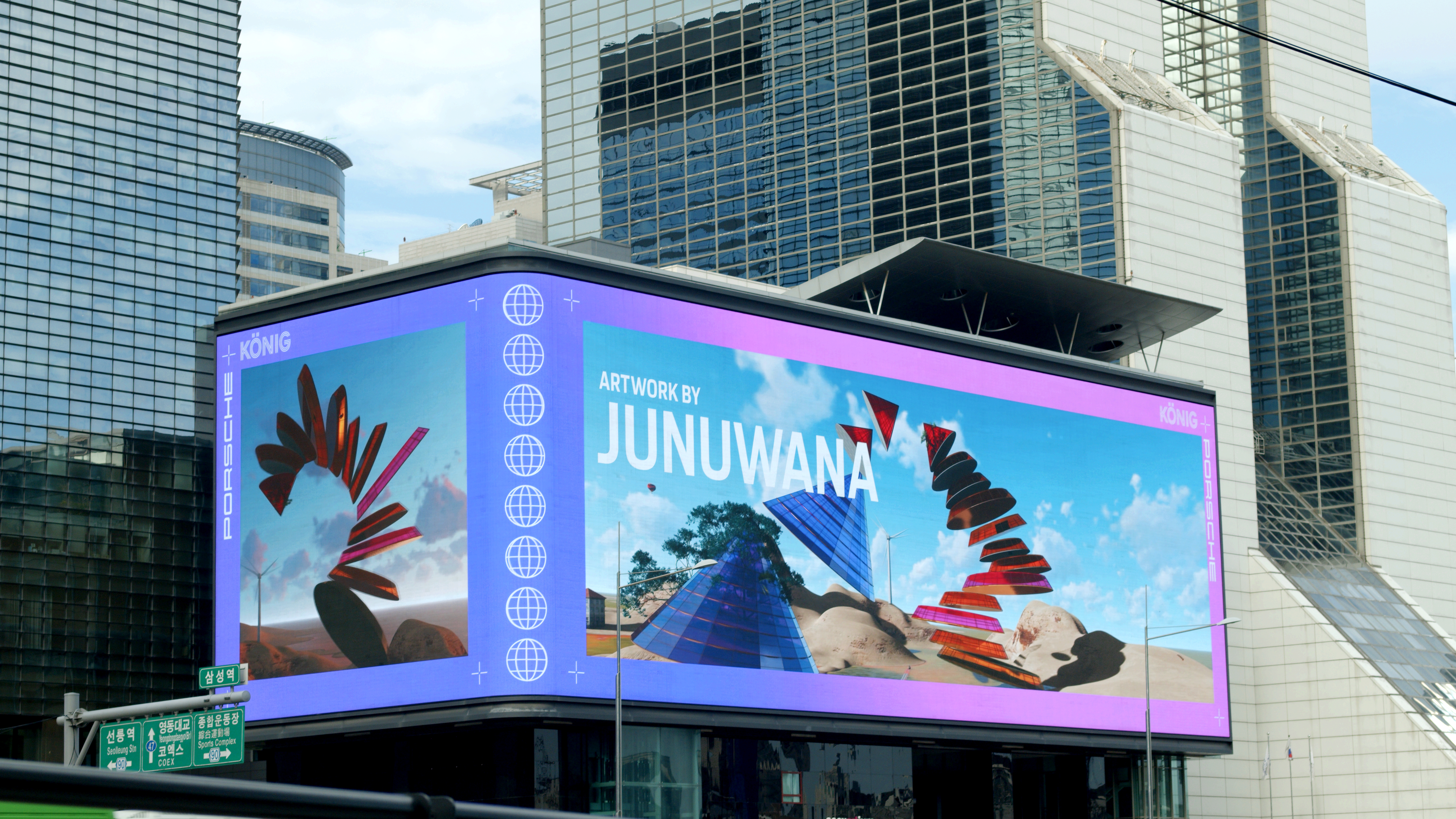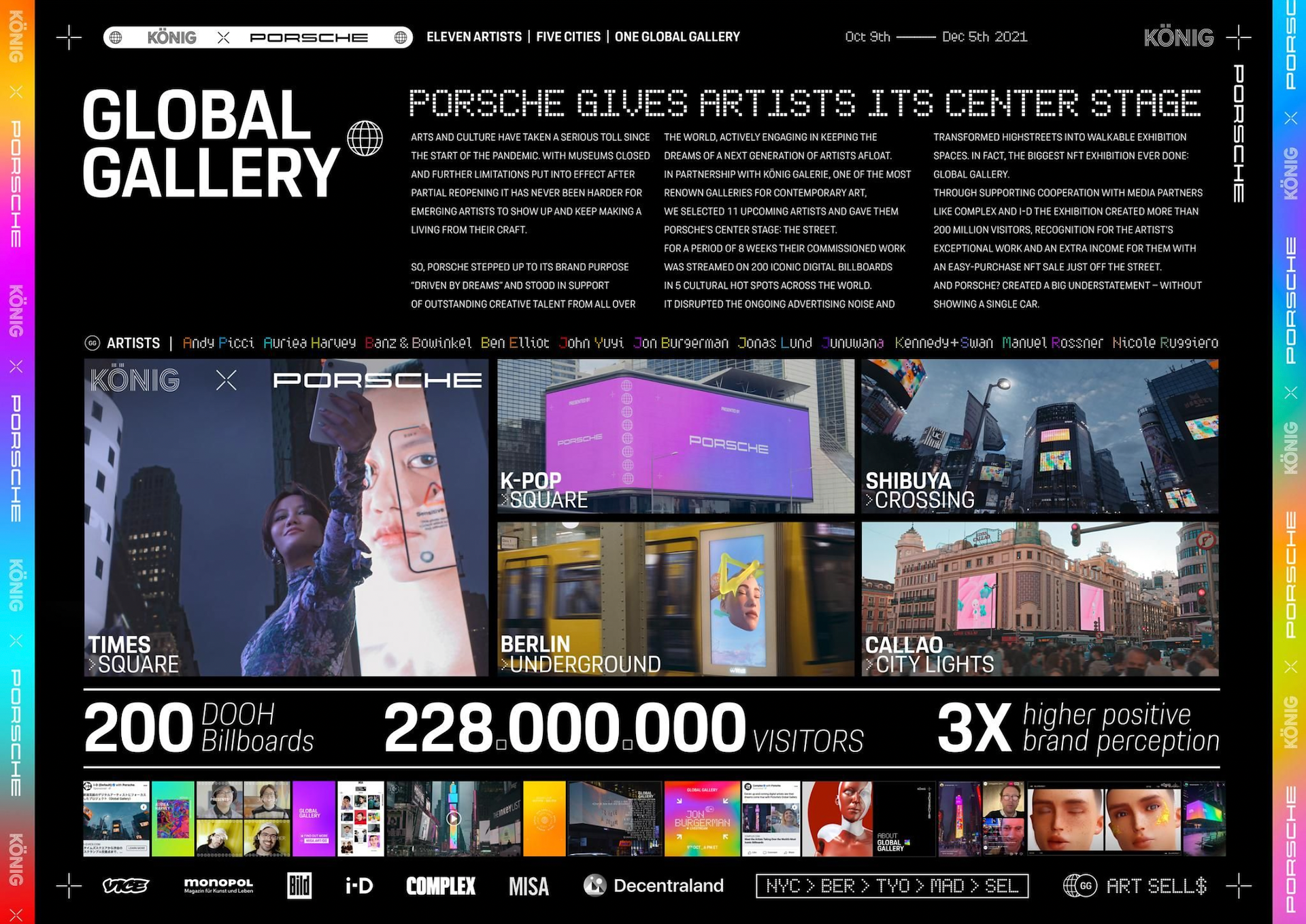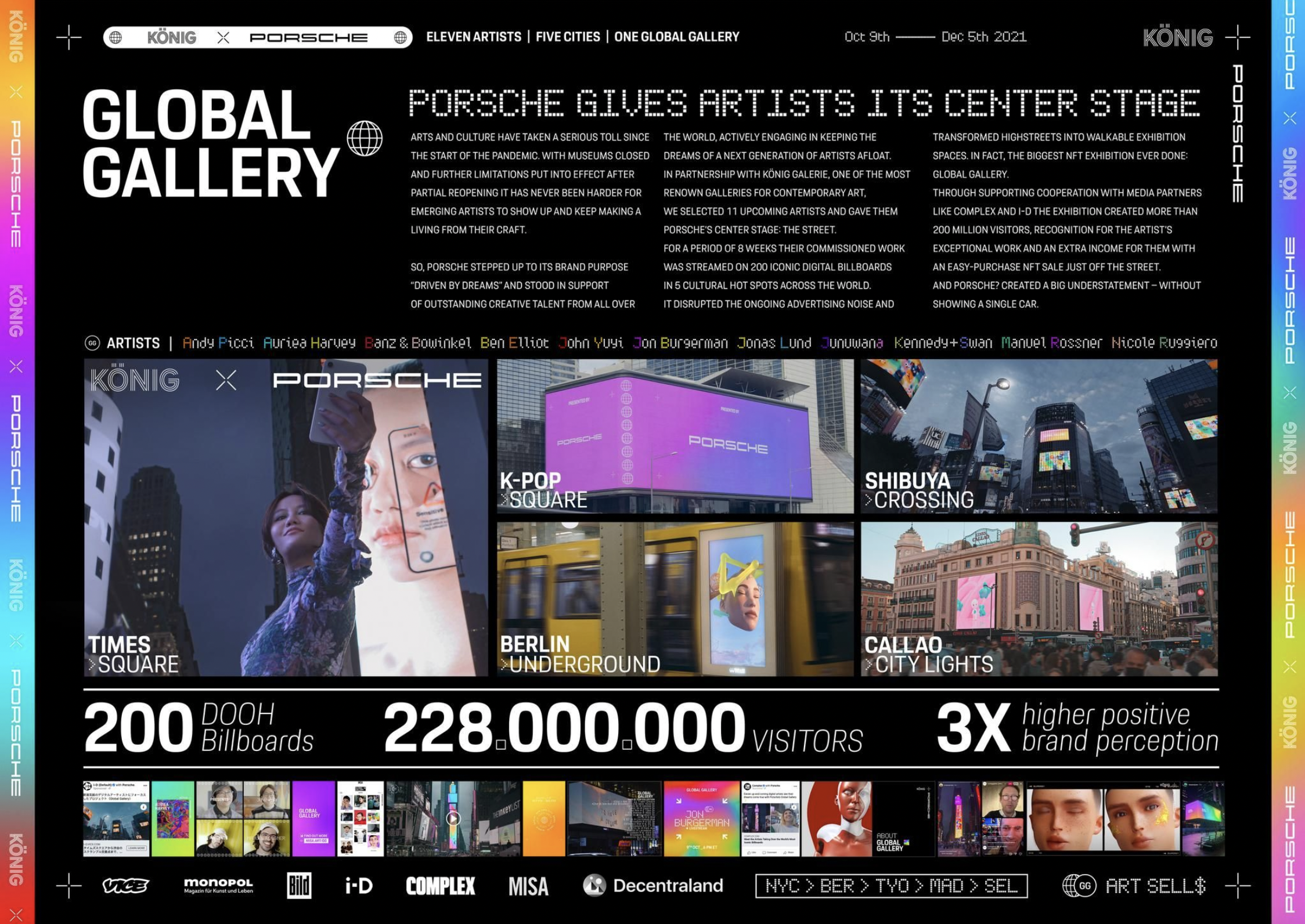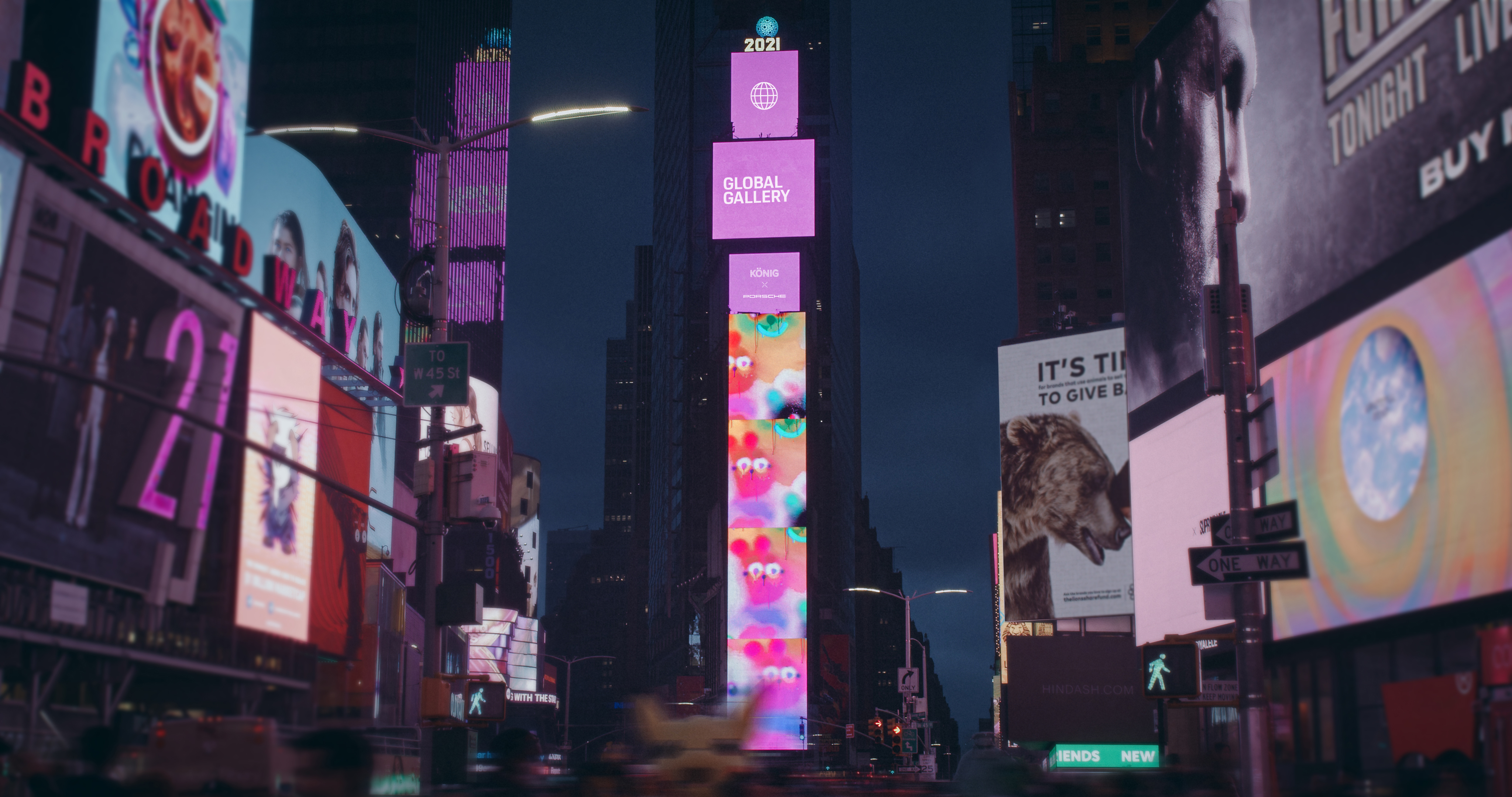 From Times Square to Shibuya Crossing, Porsche AG X KÖNIG GALERIE turn some of the world’s most iconic billboards into a canvas and a stage for emerging artists.