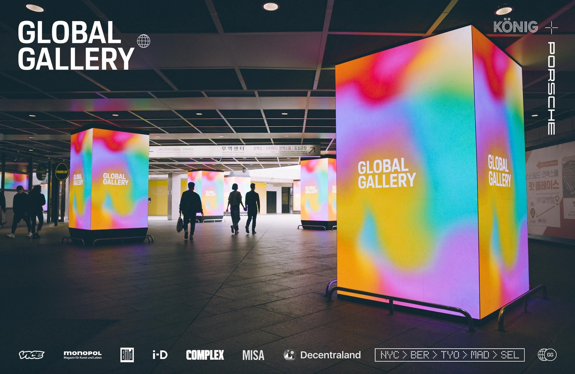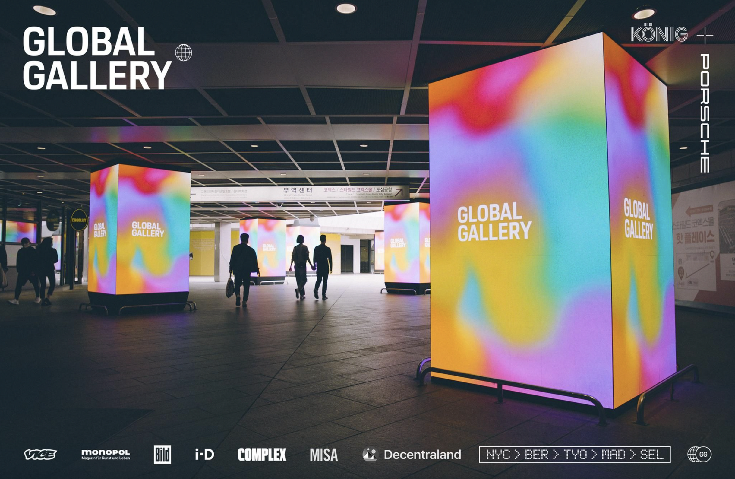 Global Gallery is an outdoor exhibition that brings emerging artists and their work to the biggest commercial hubs of the world.