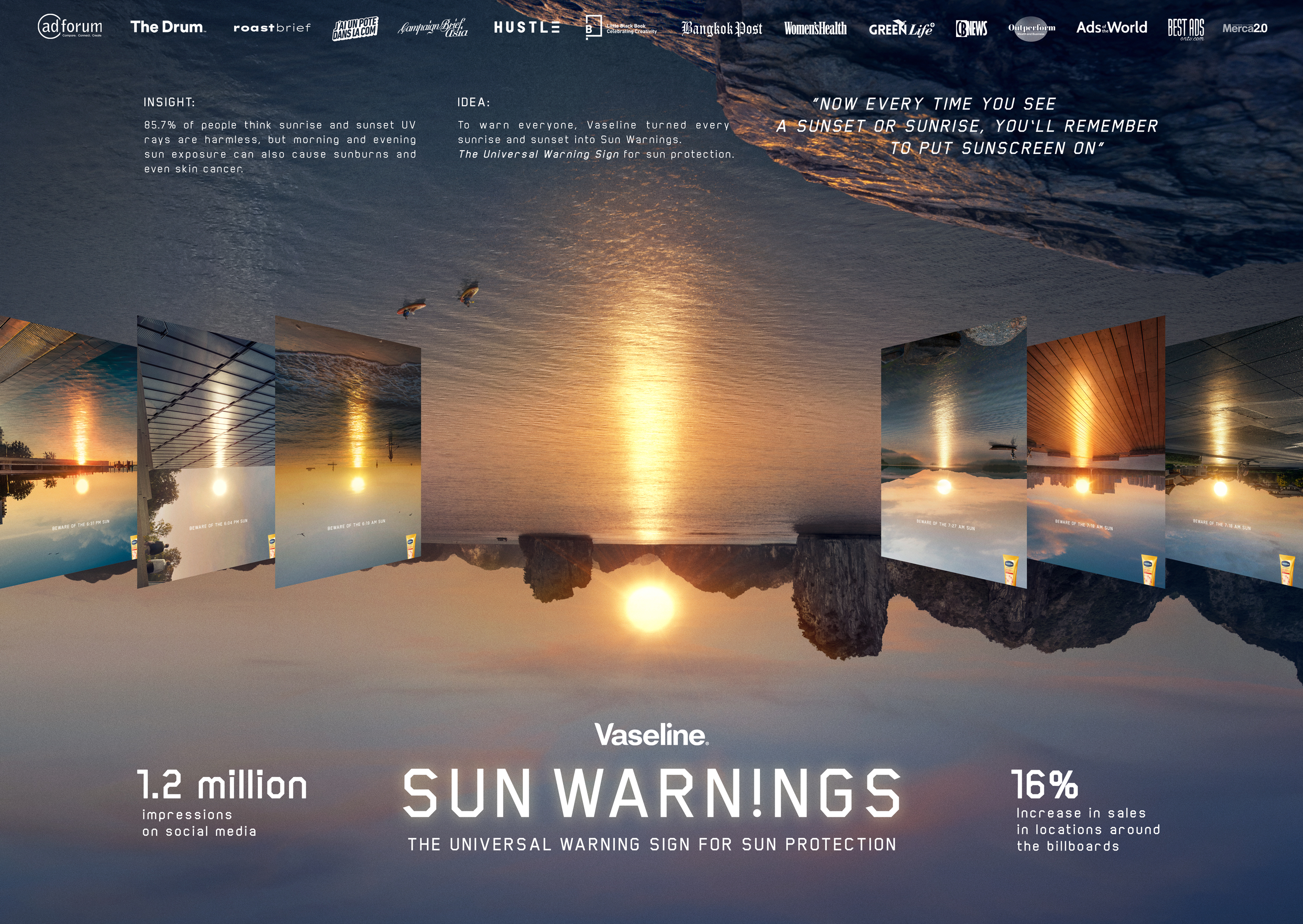 Together with Vaseline, we launched a campaign that turned the sunsets and sunrises of Thailand into an exclamation mark – the universal warning sign for sun protection.
