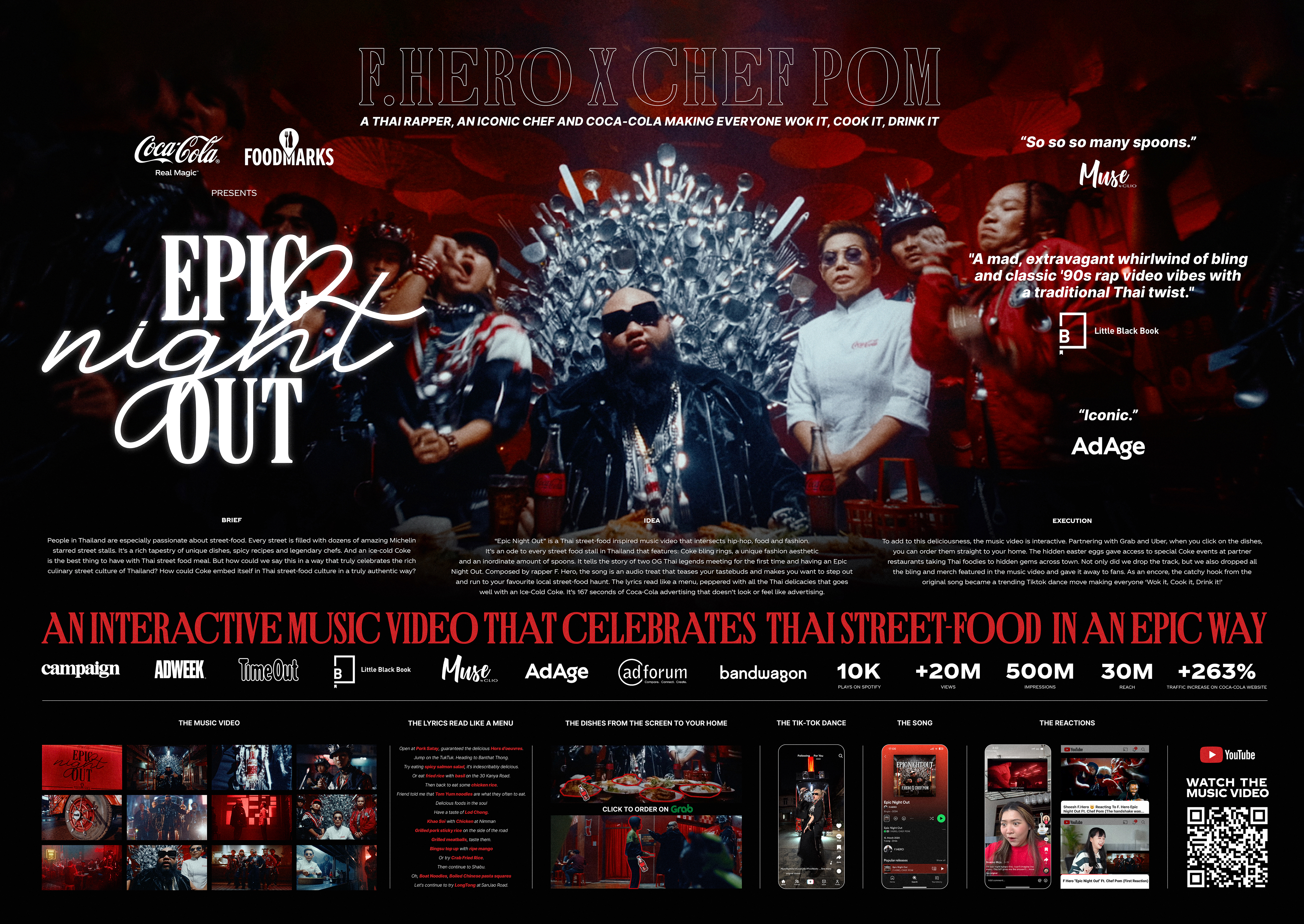 To launch Coca-Cola's Foodmarks platform in Thailand, we created an epic ode to Thai-streed food. An interactive music video featuring: a legendary Thai rapper, his cutlery crew, an iconic chef, the shiniest Coke bling bling, a lot of forks, spoons, a wok flip dance, the cutlery throne, bunch of easter eggs, yummy street food and, of course, Ice-cold Coca-Cola. Grab your popcorn (or Pad thai) and enjoy.